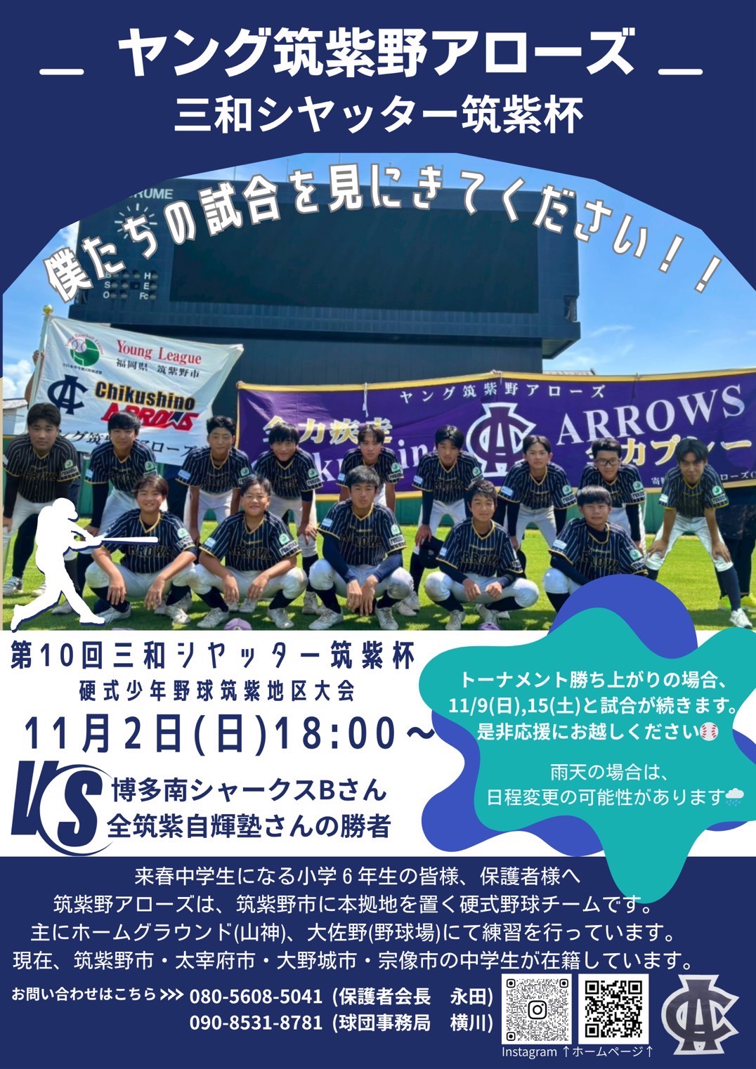 皆様、今後ともヤング筑紫野アローズに温かいご声援をどうぞよろしくお願い致します。
